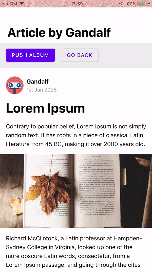 Traditionally, we have written our navigators in JavaScript for greater customizability. It fits a lot of use cases, but sometimes you want the exact native feel and the performance of native navigation. Now, we have added a new native stack navigator that uses native navigation primitives for navigation using the react-native-screens library. Under the hood, it just uses native components which might be obvious choice for native development and might be a good pick in the most cases.